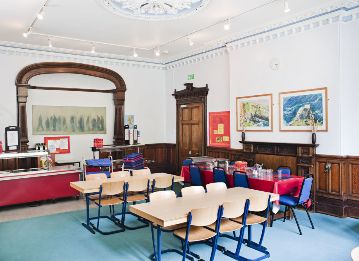Adjoining the dining hall is a light-filled conservatory with direct access to an outdoor courtyard, surrounded by trees and planting. These spaces are ideal for: