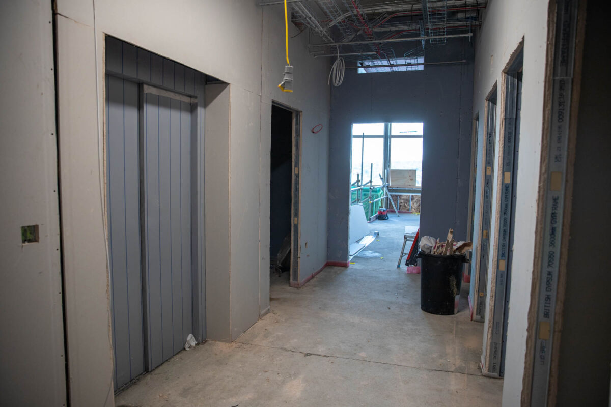 One of the most exciting areas of the build is the ‘rock room’. The room has been jacked up on rubber feet, with 3 layers of plasterboard on the walls and ceilings. Shortly, acoustic panelling will engulf the space and a bespoke door, which is due to arrive in December, will be installed. The door has been specially designed to insulate the sound – the school is investing in an extremely well-planned building, with top-of-the-range additions, to ensure it is fit for purpose for generations of musicians to come.