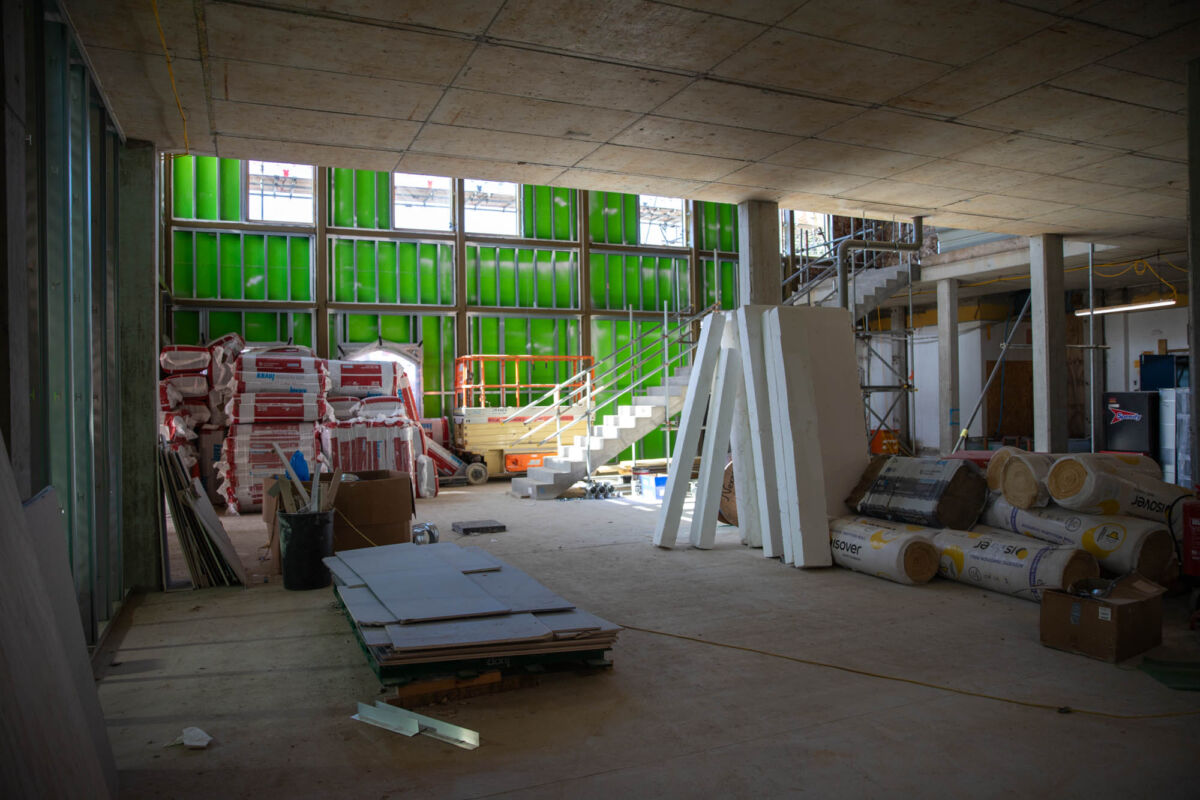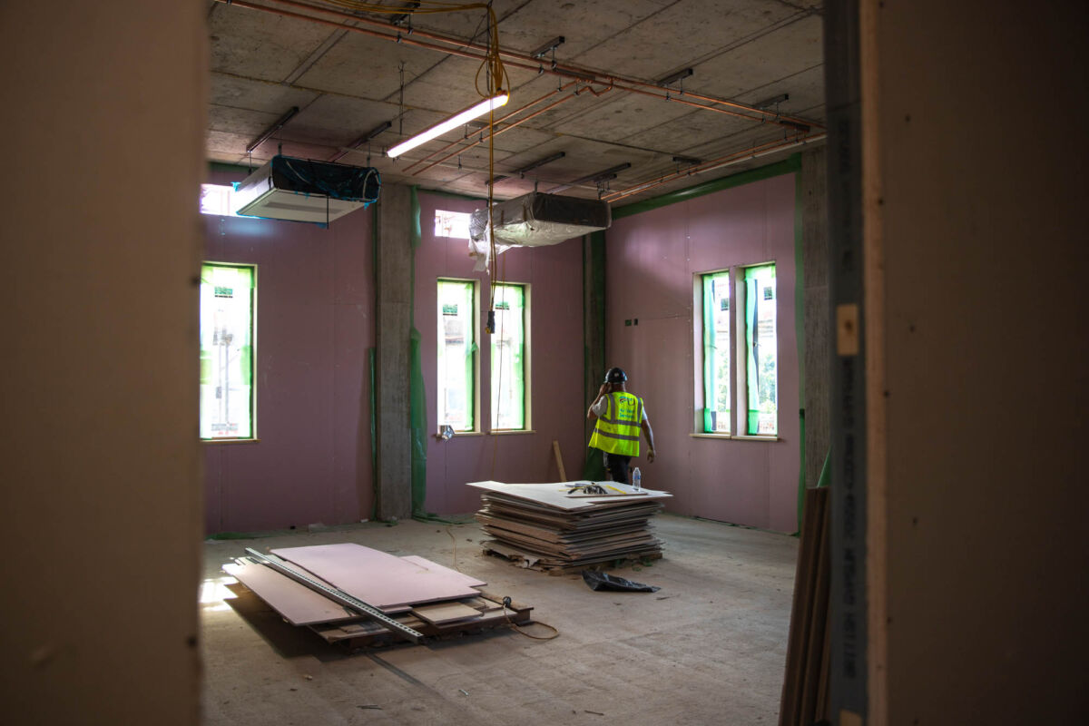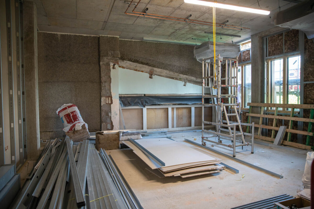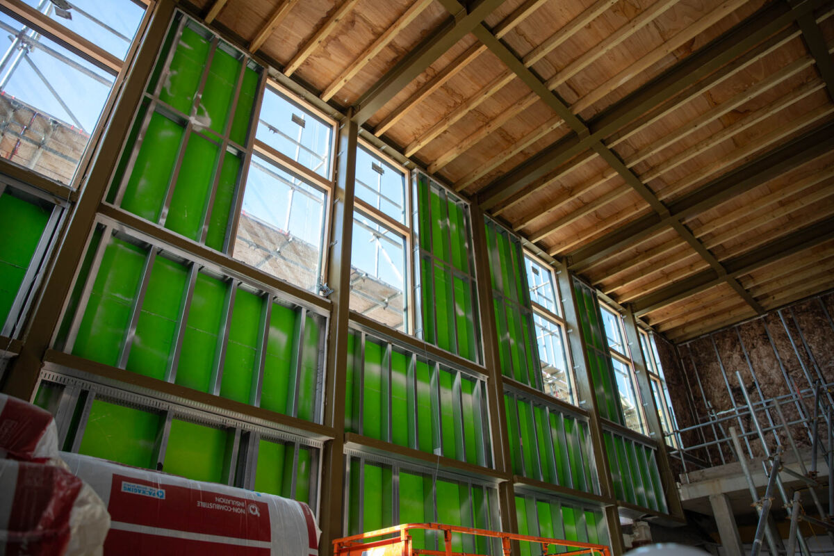 One of the most exciting transformations is happening within the old Assembly Hall. By retaining its original structure, we are minimising the embodied carbon in construction, while giving the space a new lease of life. A new roof has been installed, sustainable timber windows are being fitted, and a mezzanine floor has been added to enhance functionality. The team is also recycling materials wherever possible, with plans to create a unique art installation from the hall’s original wooden flooring to honour its heritage. The space will eventually be transformed into a state-of-the-art 900-seat auditorium, offering unrivalled opportunities for music-making, drama, and large-scale school events.