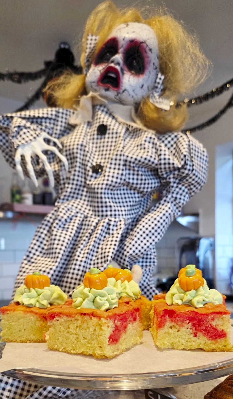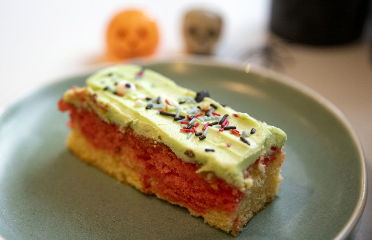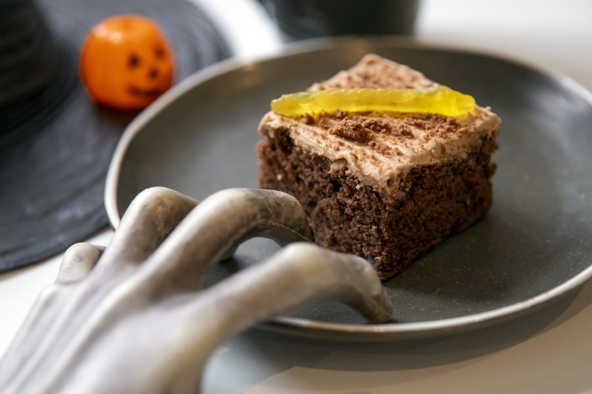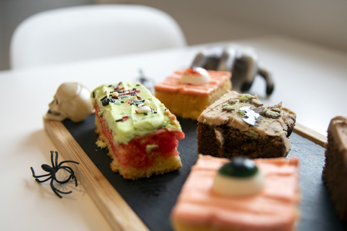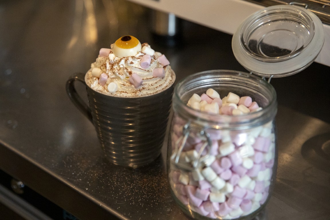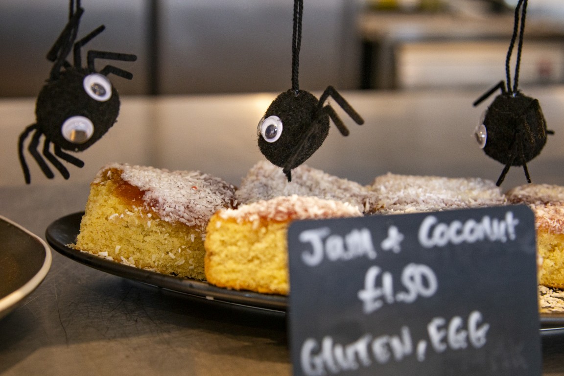 Spooky decorations adorn the windows, and more importantly, freshly baked Halloween-themed goods are now being served – such as brownies, caramel cake, chai cake, hot chocolate and lemon and blueberry muffins, topped with edible eyeballs, bats and snakes!