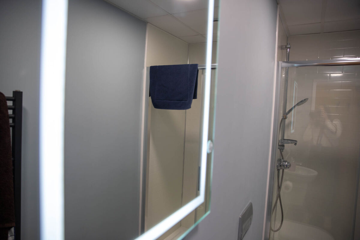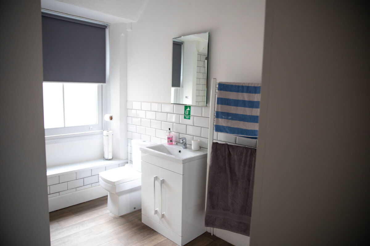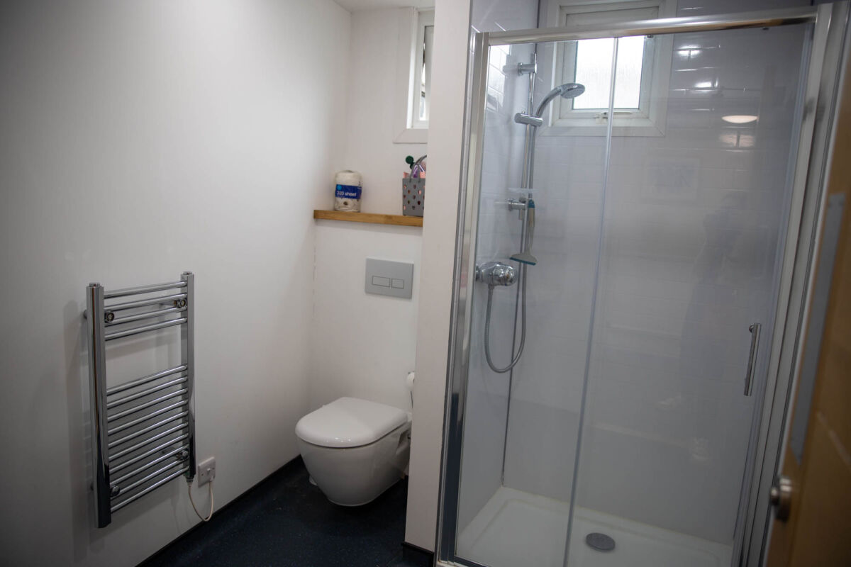 Bathrooms are communal with showers, toilets and sinks. Heated towel rails are provided. Bath mats and towels can be provided on request.