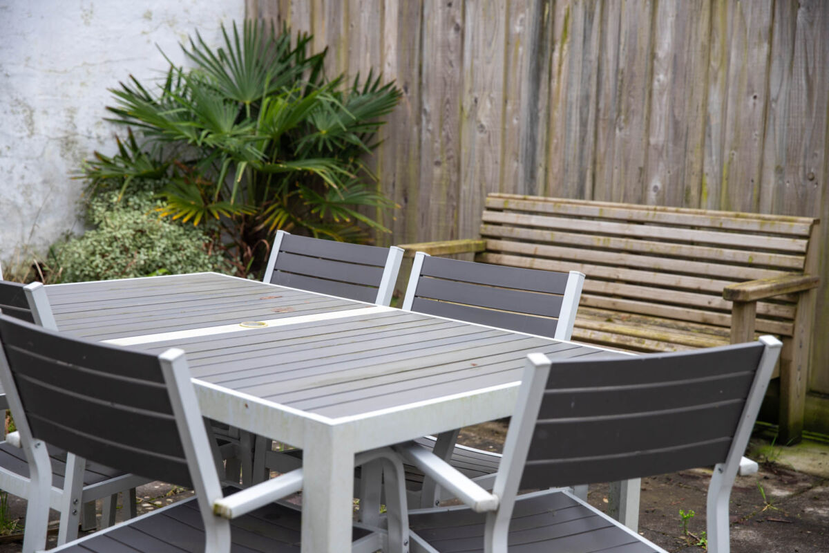 The courtyard features tables, chairs and bean bags for relaxing on warm evenings.